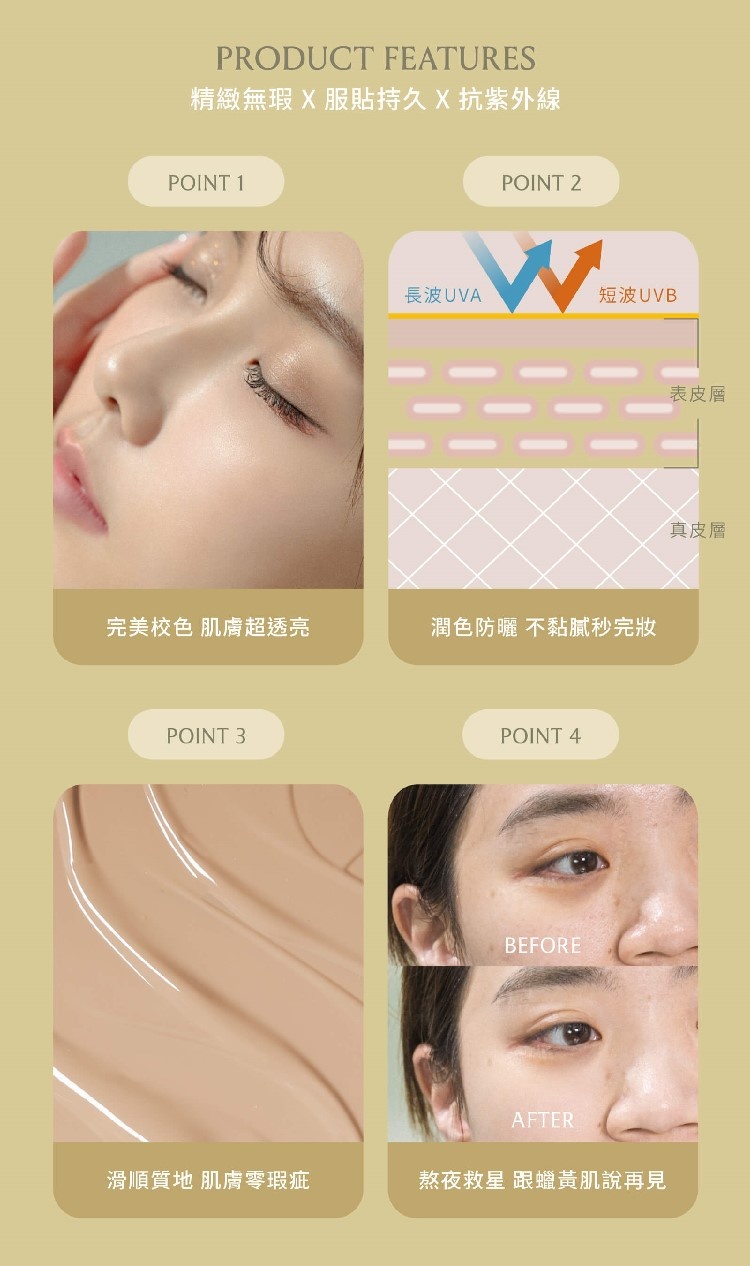 用法|取適量輕點於全臉,可用雙手或美妝器具均勻於臉上輕拍開。