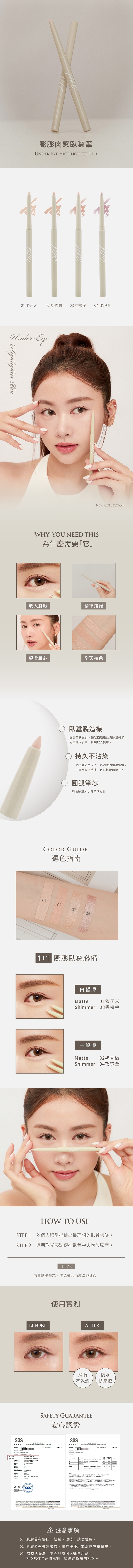 圓弧筆狀設計,輕鬆描繪眼頭與臥蠶細節,搭配高密度顯色因子,奶油般的輕盈質地,一筆滑順不結塊,定色抗暈超持久,完美融入肌膚,自然放大雙眼。