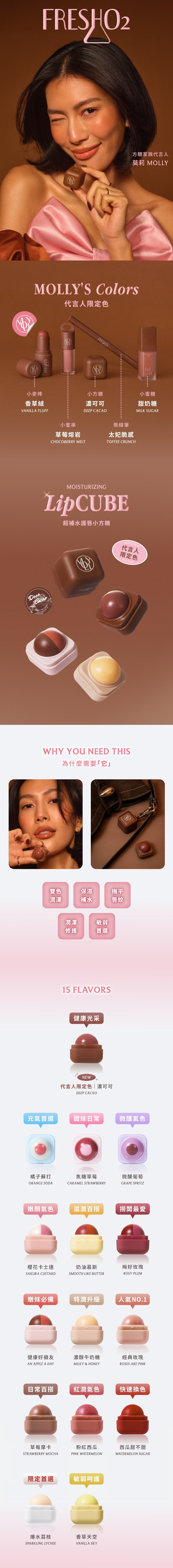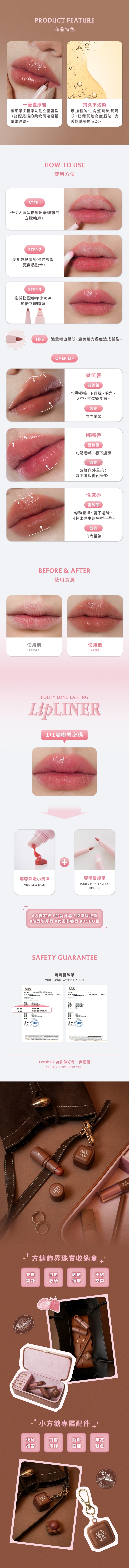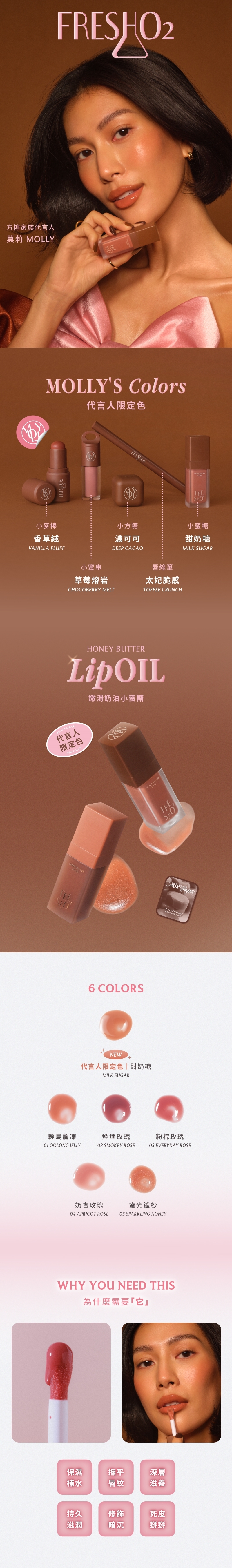 莫莉的立體唇形秘密武器!焦糖棕色搭配絲滑奶霜般筆觸,修飾暗沉,讓雙唇更立體飽滿。