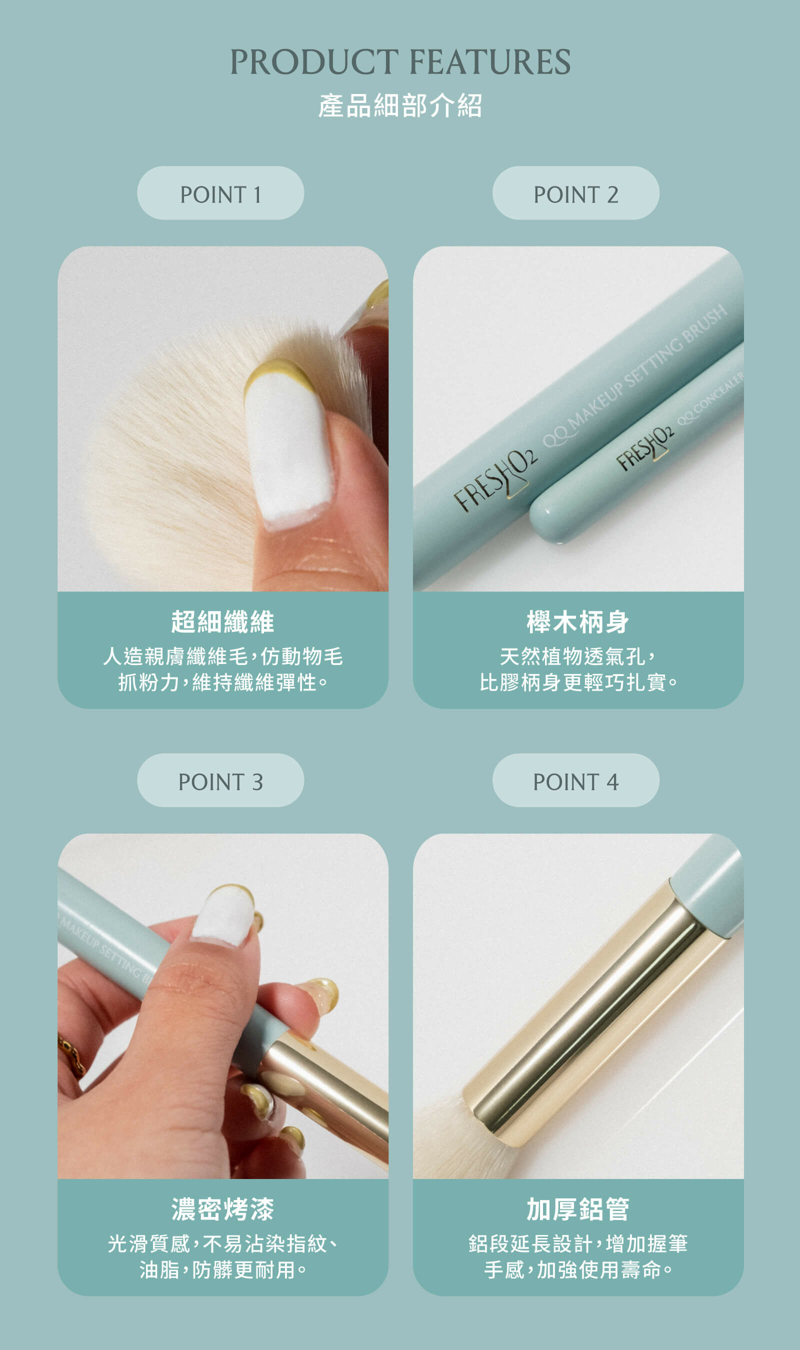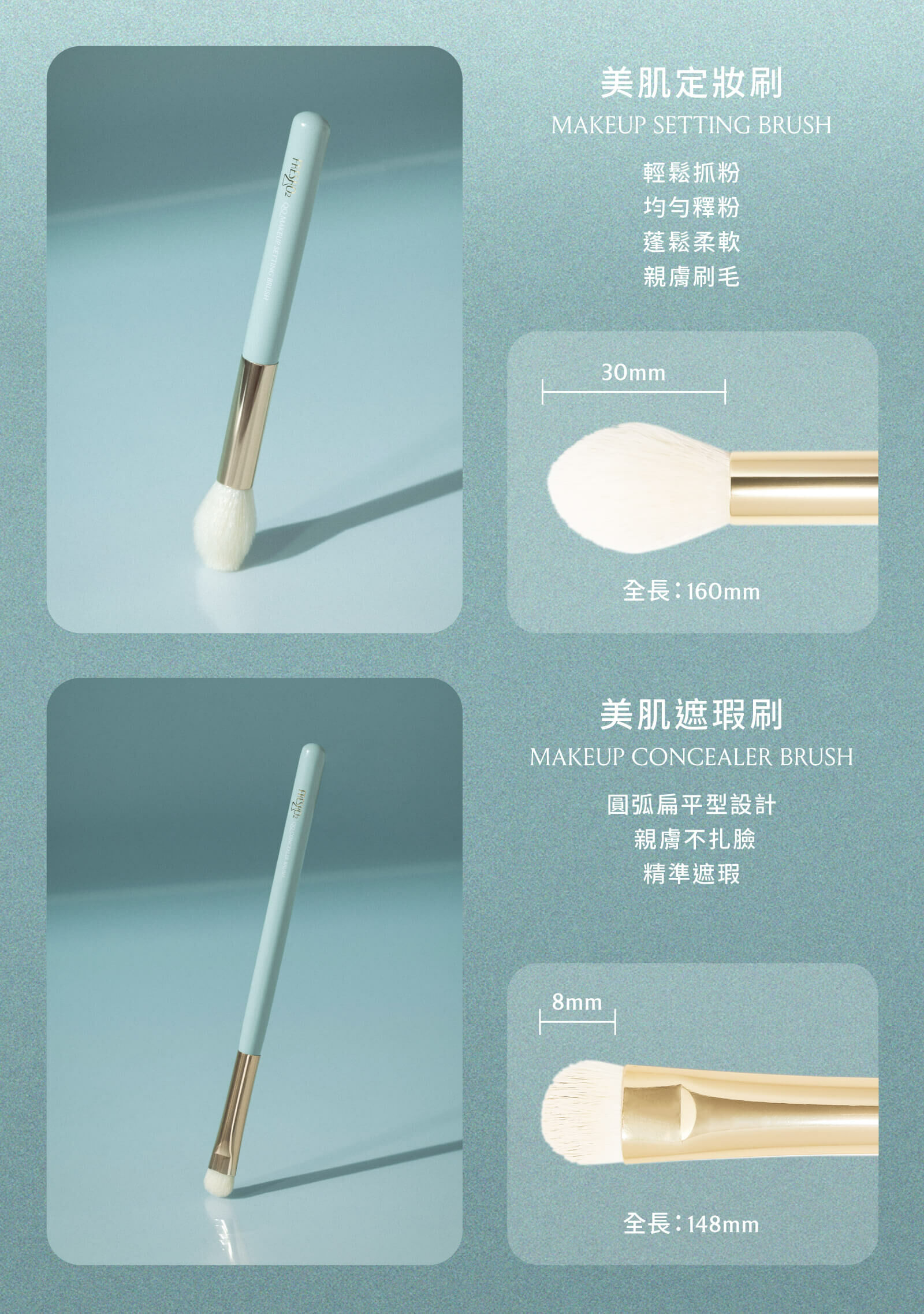 針對彩妝重點部位量身打造,特製纖維毛柔軟不刺膚,刷毛蓬鬆易沾取好清潔,輕鬆上妝無負擔,打造完美精緻妝感。