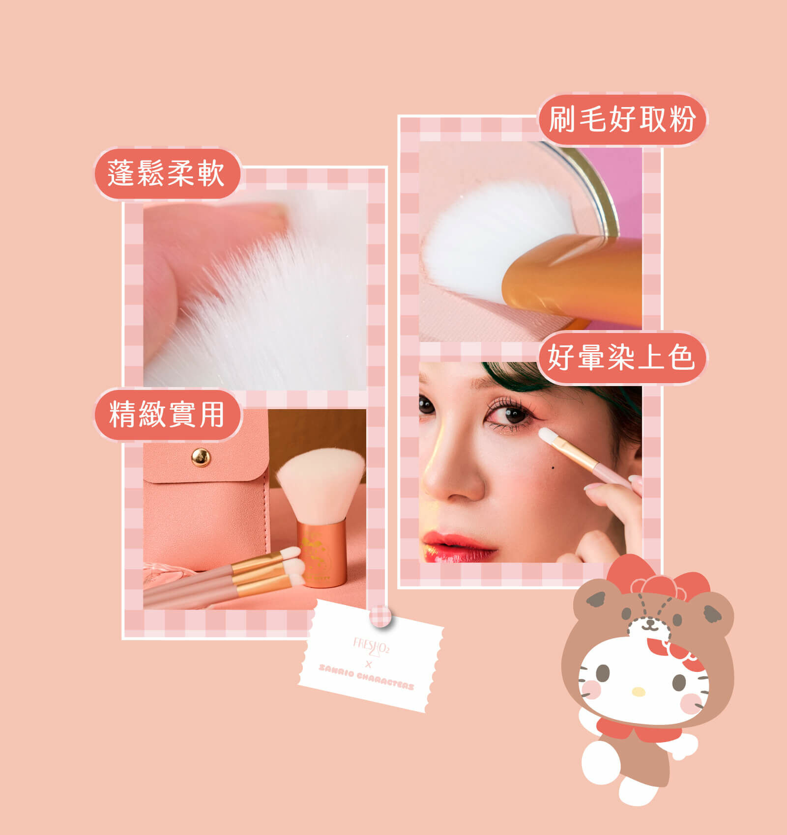 「斜角萬用刷」蓬鬆柔軟斜角造型,輕鬆暈染腮紅、修容,也能當定妝刷使用