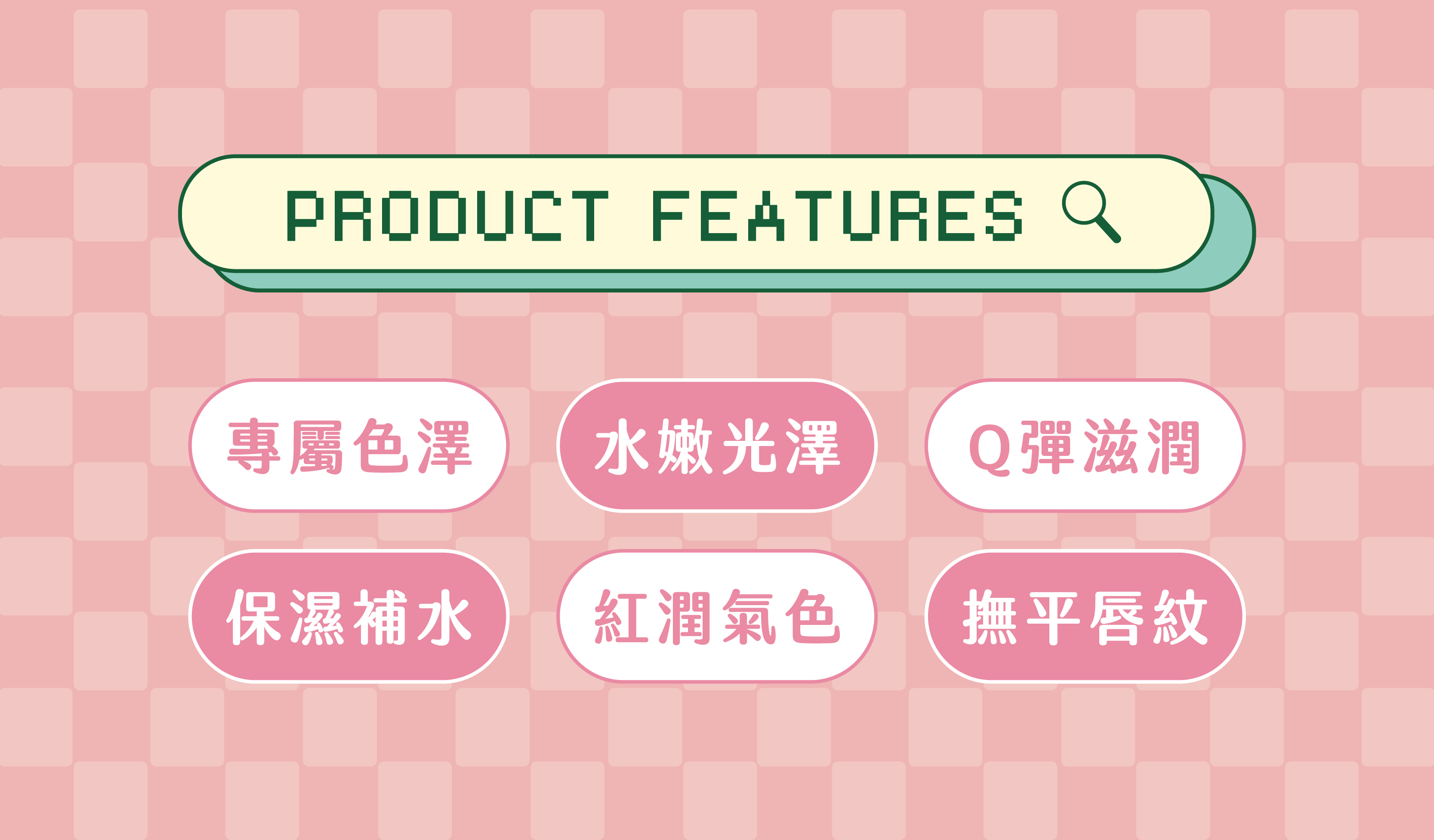 敏弱肌也能使用唷!高效潤澤+自然換色,輕巧好攜帶,同時為唇部進行補水、鎖水、保水三重機制,打造專屬唇色,閃耀水潤光澤。