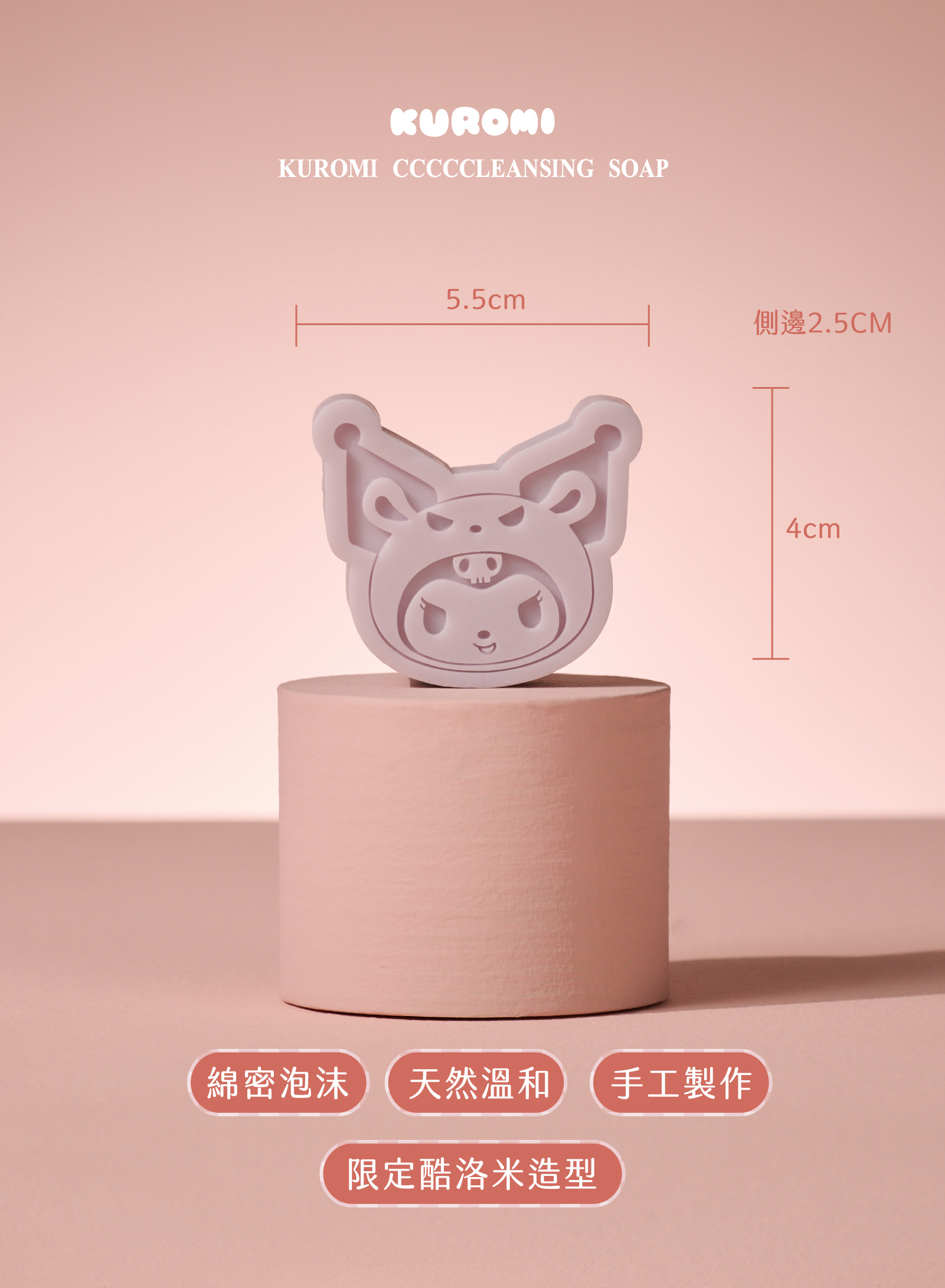 特調香氛,限定酷洛米造型,每顆皆為手工製作,綿密泡沫可快速溶解髒污,可清洗彩妝工具,不易造成毛質損傷,任何毛質均適用。
