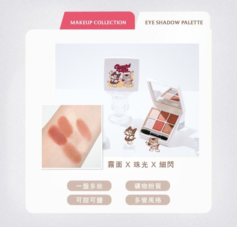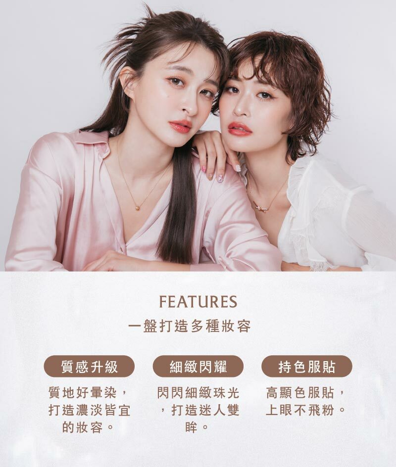 精選雲母礦物基底配方,搭配多種保濕成分,加倍提升眼妝持久度,完美呈現閃耀光彩,質地顯色好延展,一盤創造多樣妝容。