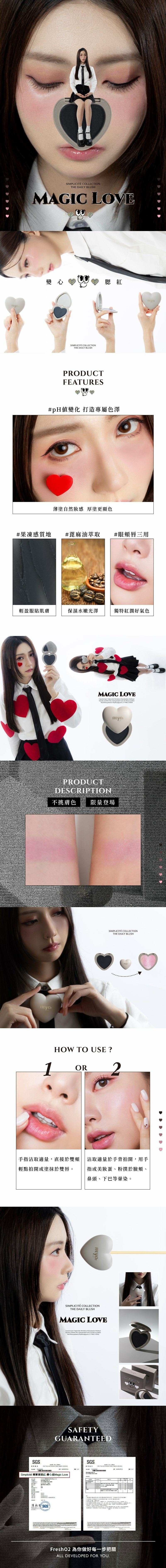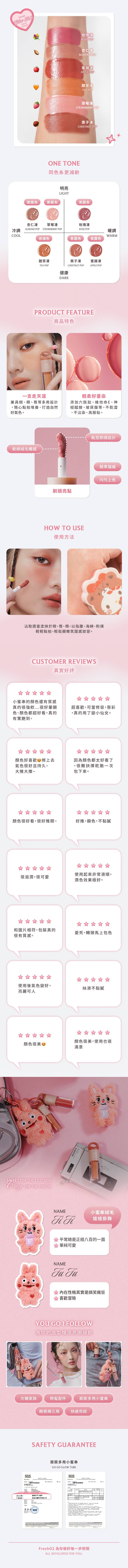 眼頰唇色,隨pH值自動換色成專屬自己的腮紅。腮紅x水光棒,一顆心搞定!