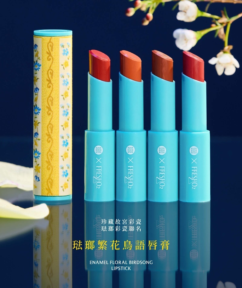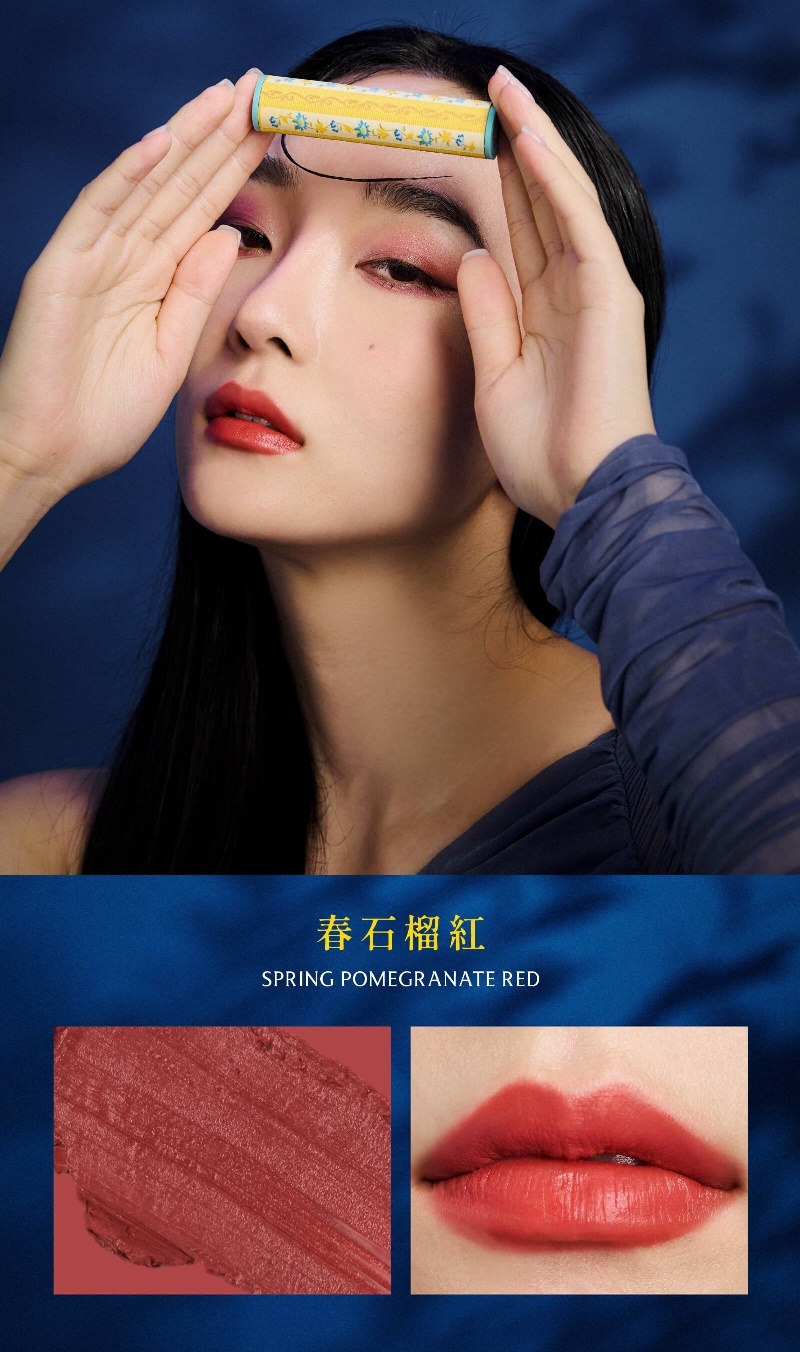 創意來自於故宮博物院院藏品《清 康熙 銅胎畫琺瑯方盤》,花卉優美的姿態,融入風雅知性的氣質,結合文物收藏的概念,搭配高人氣的熱銷選色,輕鬆描繪出動人雙唇。