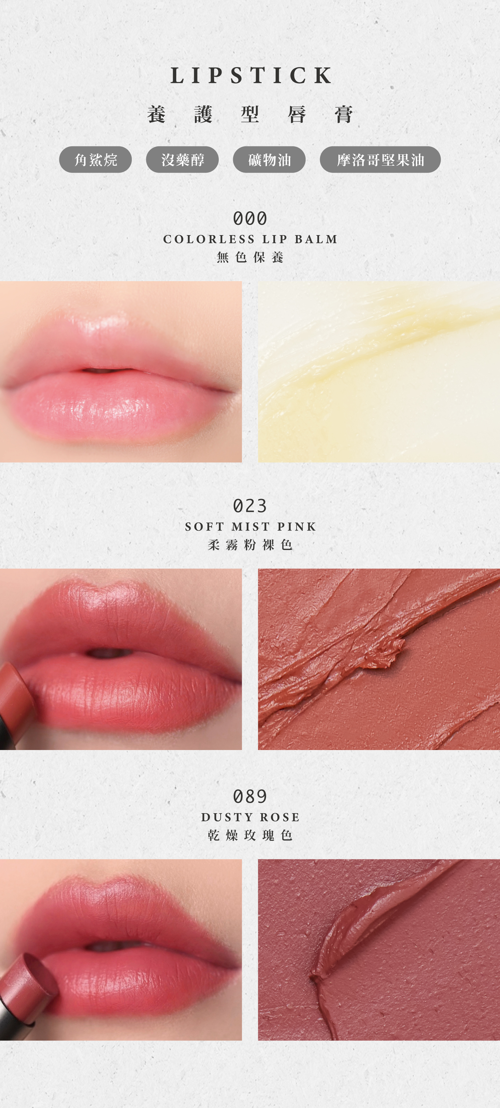 絲絨柔霧光質地|高顯色持久配方|呵護雙唇保濕成分