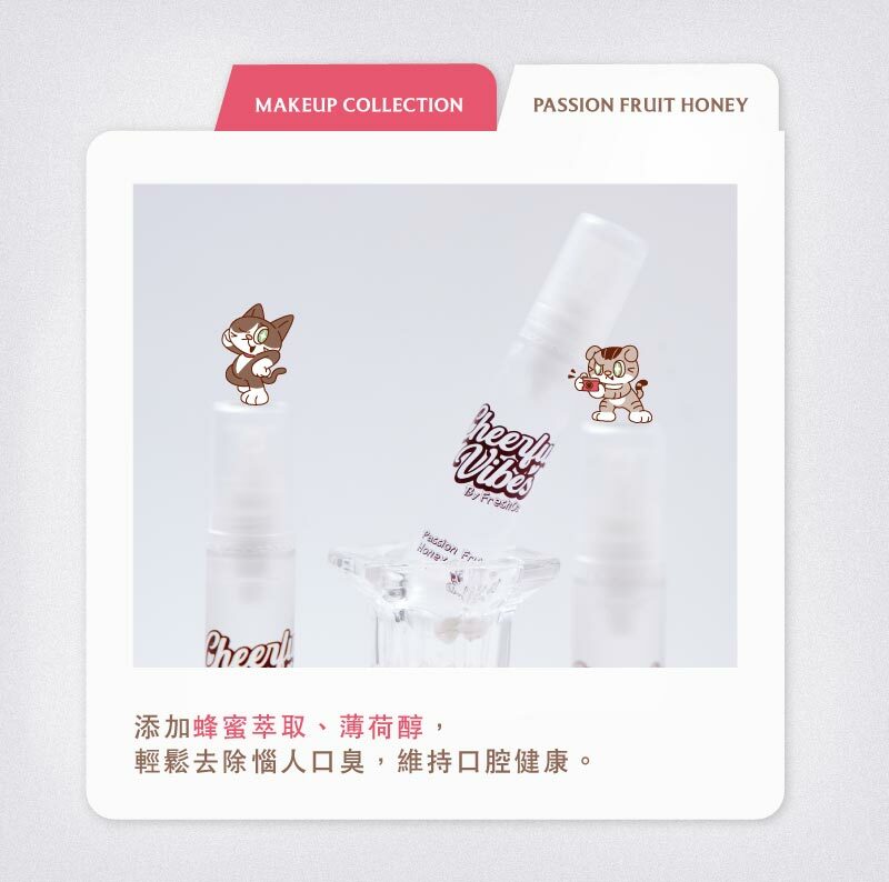 小巧瓶身設計,隨身收納不占空間,搭配清爽百香果香氣x蜂蜜精華,淨味科技,一噴去除口腔異味,杜絕惱人口氣,迎接好人氣。