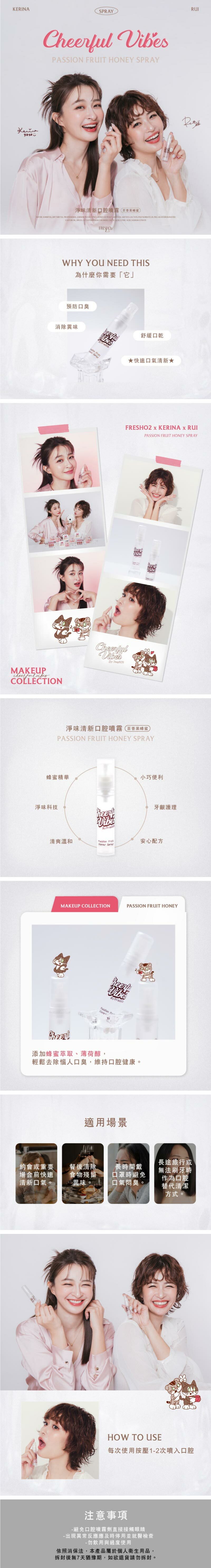 小巧瓶身設計,隨身收納不占空間,搭配清爽百香果香氣x蜂蜜精華,淨味科技,一噴去除口腔異味,杜絕惱人口氣,迎接好人氣。