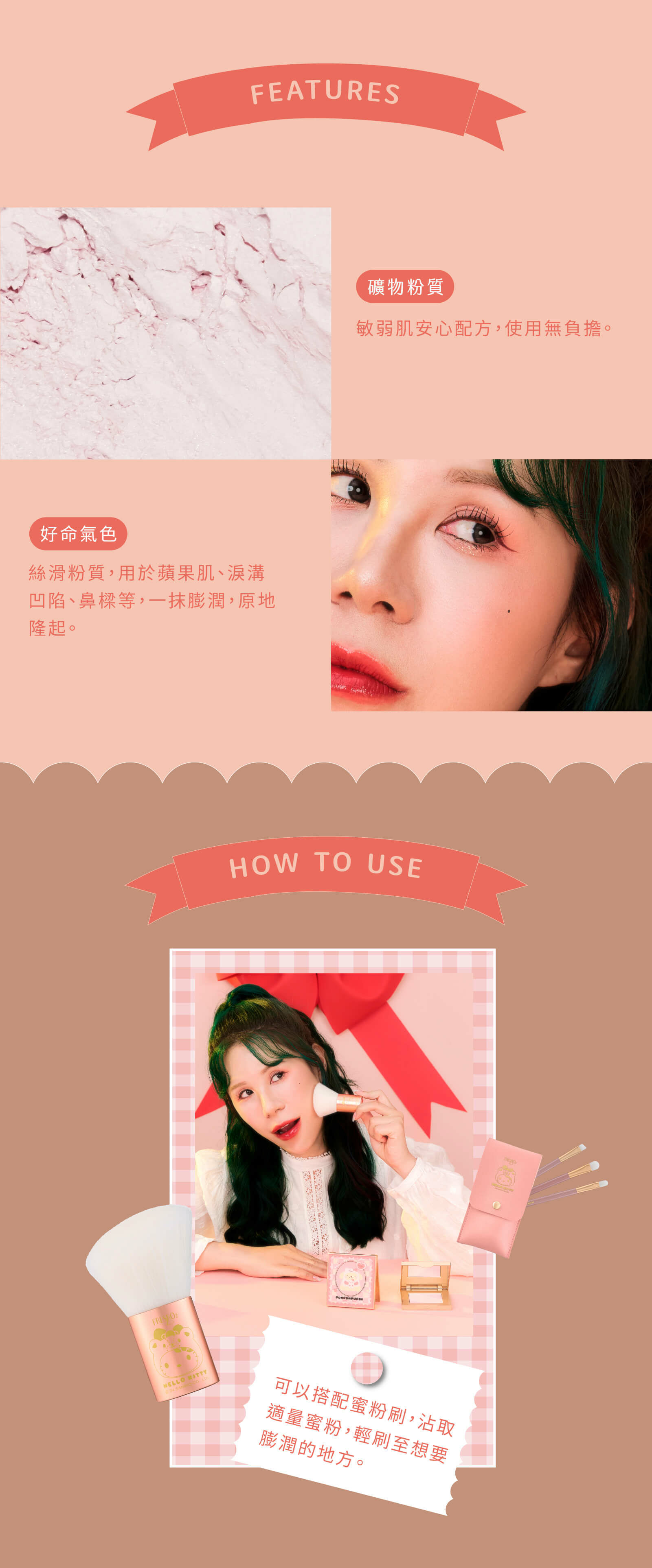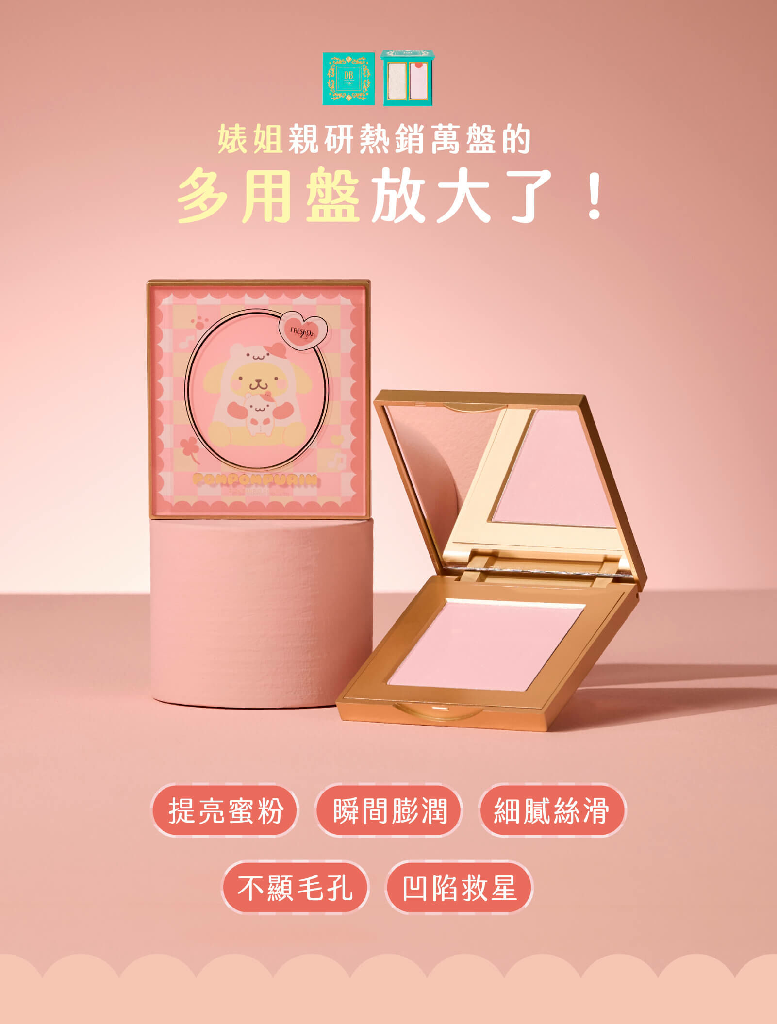 局部提亮蜜粉,質地絲滑細膩,一抹膨潤透亮,高持妝、不飛粉、高延展性,提亮蜜粉可用於局部定妝,均勻服貼不顯毛孔;專門修飾淚溝凹陷,一抹膨潤,打造好命飽滿感。