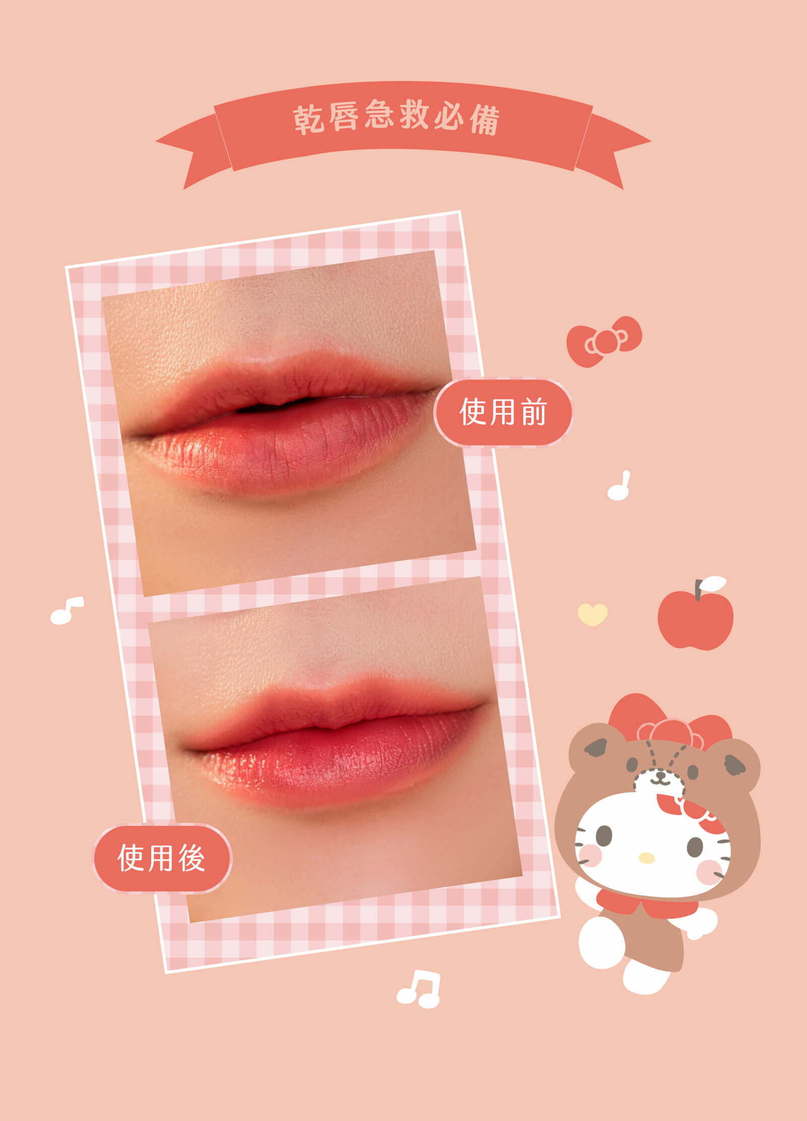 解決所有乾燥、脫皮、暗沉、乾裂、蒼白無氣色、唇紋明顯等唇部問題✨
