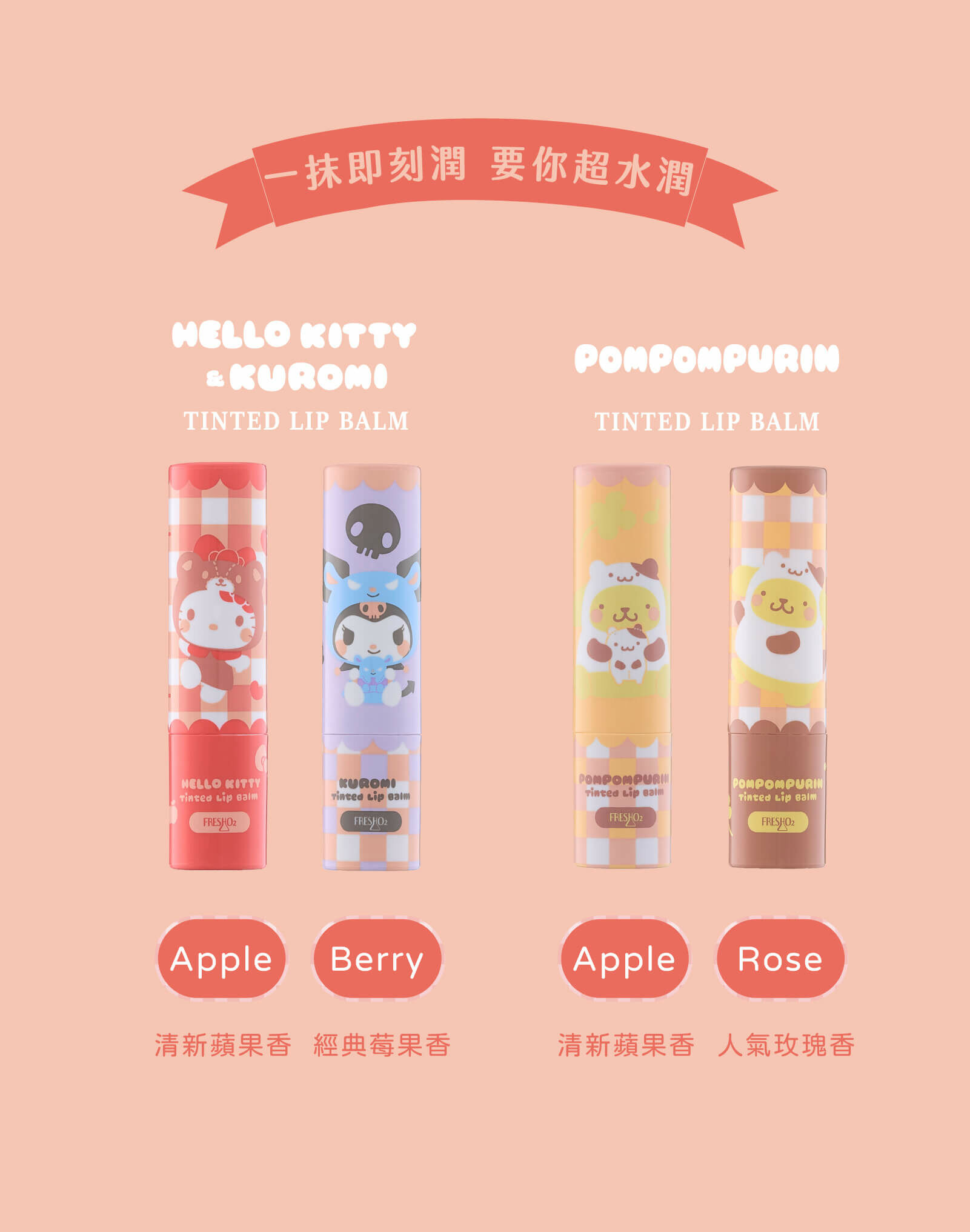 HelloKitty:清新蘋果香|酷洛米:經典莓果香。