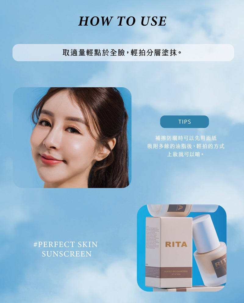 質地清爽不黏膩,選用高係數的物理性防曬,不造成肌膚負擔,柔焦肌膚毛孔、修飾膚色不泛白,隔離紫外線的傷害,創造完美無瑕的妝感。