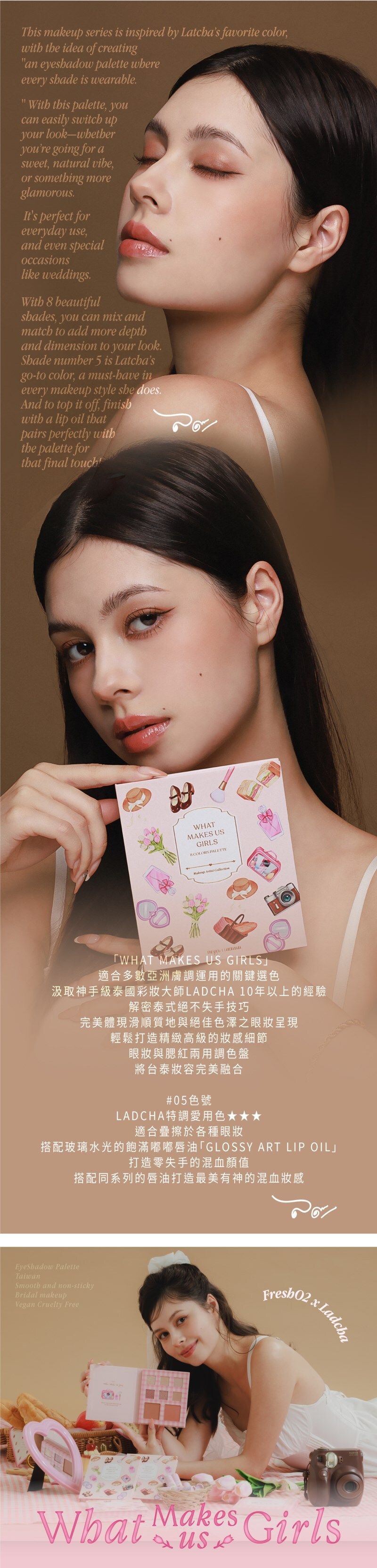 一盤兼具眼影與腮紅的萬用多用盤,選用細緻的雲母礦物粉質,